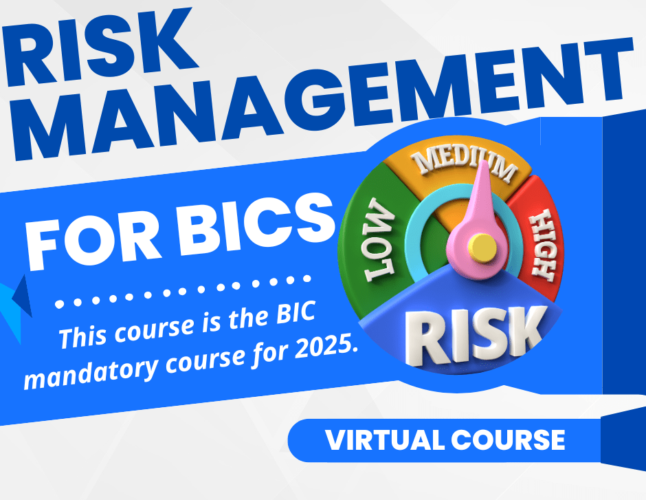 This new course gives four hours elective continuing education credit and meets the mandatory requirement for BIC’s renewing in 2026. As the title states, the focus is on risk management.