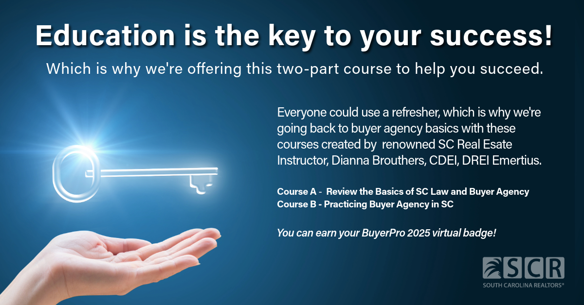 This is the first part of a two-part course provided by SC REALTORS. This course is a look back at the basics of buyer agency and how SC law impacts its practice. Starting with the required paperwork for disclosure and documentation, it flows through buyer client selection, a basic buyer agency presentation, discussions regarding commitments and responsibilities of the buyer client, and the buyer agency agreement.
